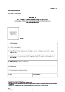 20/1 PROŠNJA ZA IZDAJO ALI PODALJŠANJE DOVOLJENJA ZA ZAČASNO PREBIVANJE ZARADI ZDRUŽITVE DRUŽINE (47. člen Zakona o tujcih)
